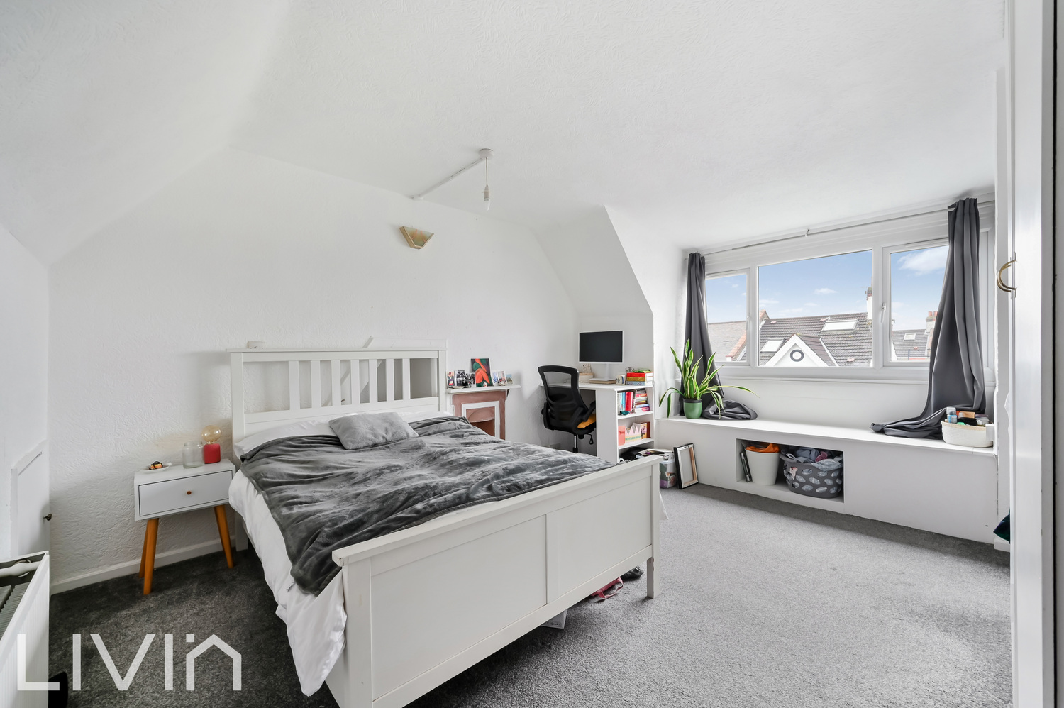 The top floor is a standout feature, offering a large loft-style bedroom with a dormer window and useful eaves storage, creating an excellent main suite, guest space or work-from-home retreat. Outside, the property enjoys a private rear garden with patio areas and scope to personalise and landscape, plus a modest front forecourt adding welcome separation from the street.